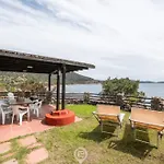 Gasten kunnen genieten van een kust uitzicht op de zee vanaf een terras in deze gesitueerde in Villasimius Waterside Oasis House Villa Villasimius, op 3 km van het Spiaggia di Campulongu.